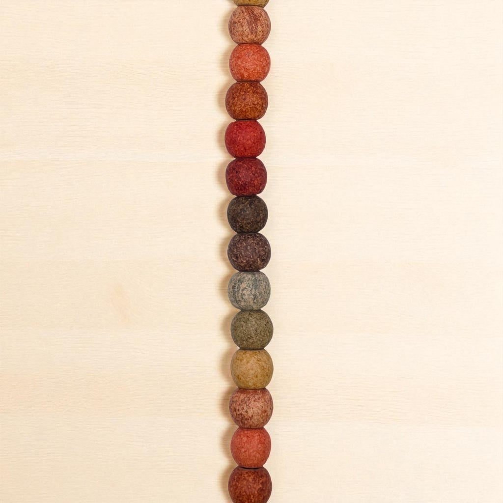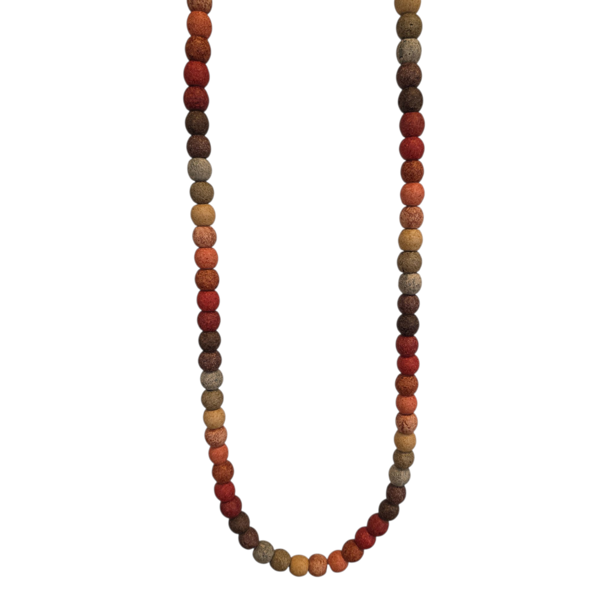 Each bead is shaped from natural clay and hand-painted in a delicate ombré of coral tones — from soft blush to rich terracotta — echoing the sunlit hues of island sunsets. Strung on a smooth faux leather cord, the design pairs organic craftsmanship with a modern, minimalist finish.