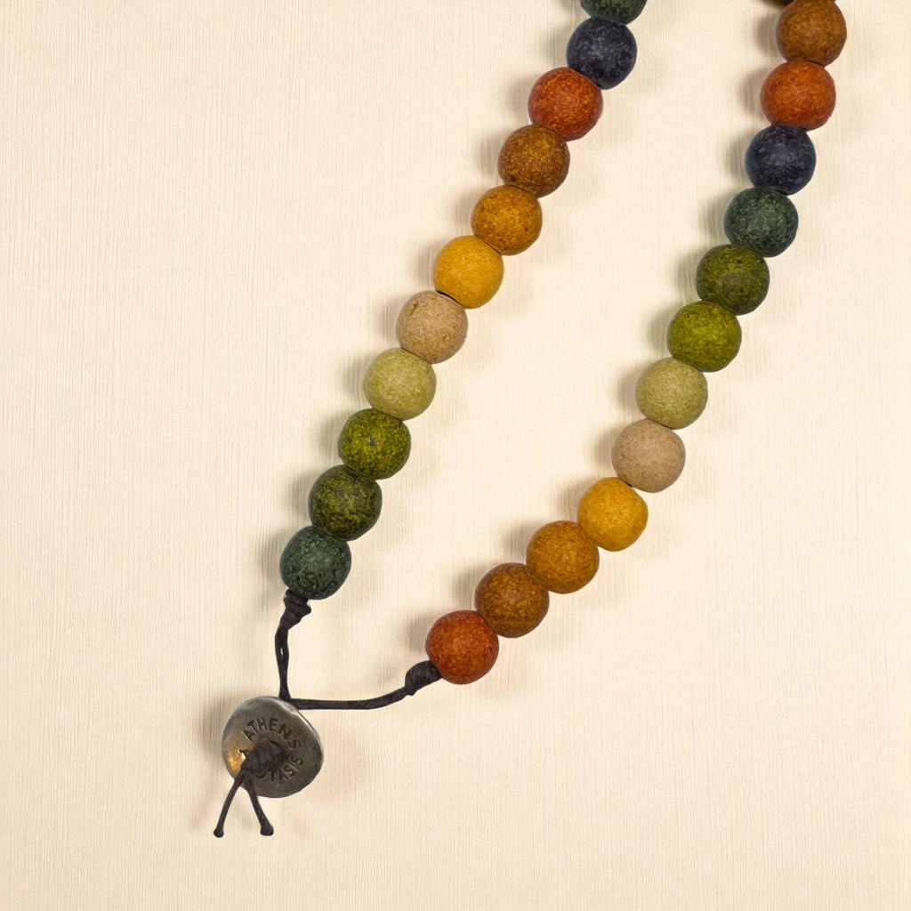Inspired by the deep, tranquil tones of the Greek countryside, this handcrafted necklace from Athens Protasis exudes natural elegance and earthy sophistication.