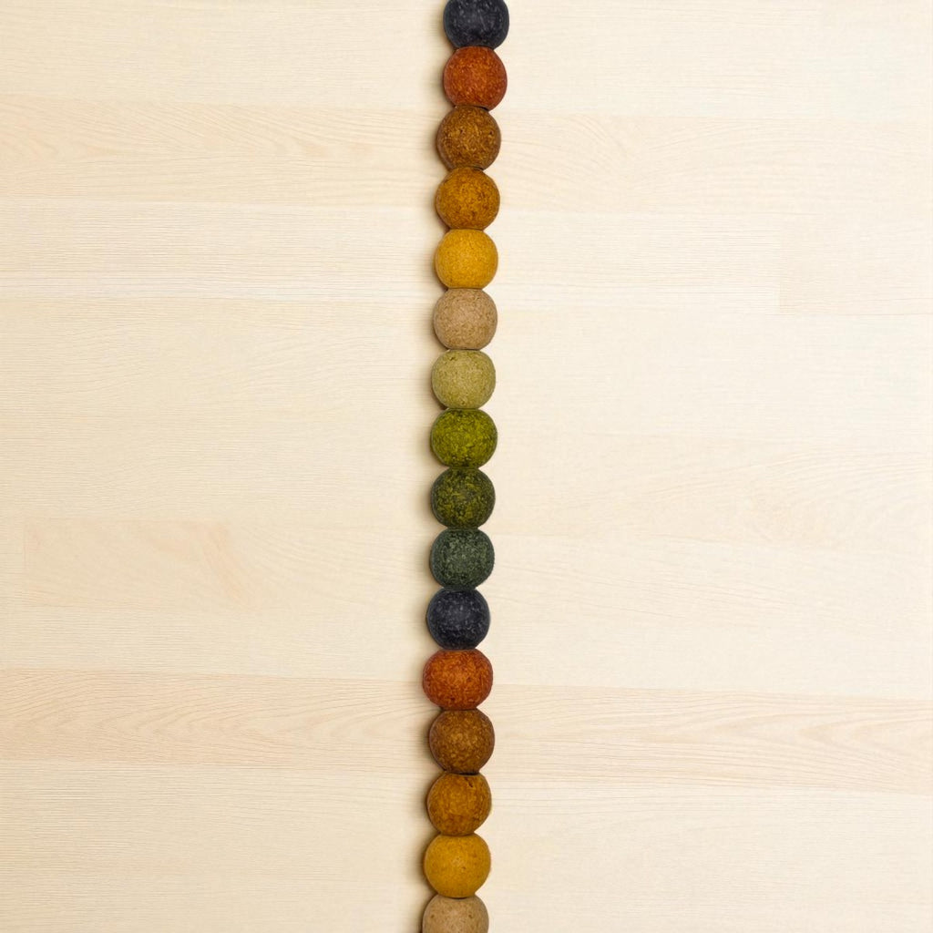 Each bead is formed by hand from fine clay and painted in a rich ombré of forest greens — from moss to deep emerald — echoing the serene beauty of nature. Strung on a soft faux leather cord, the necklace blends organic texture with a sleek, modern finish.