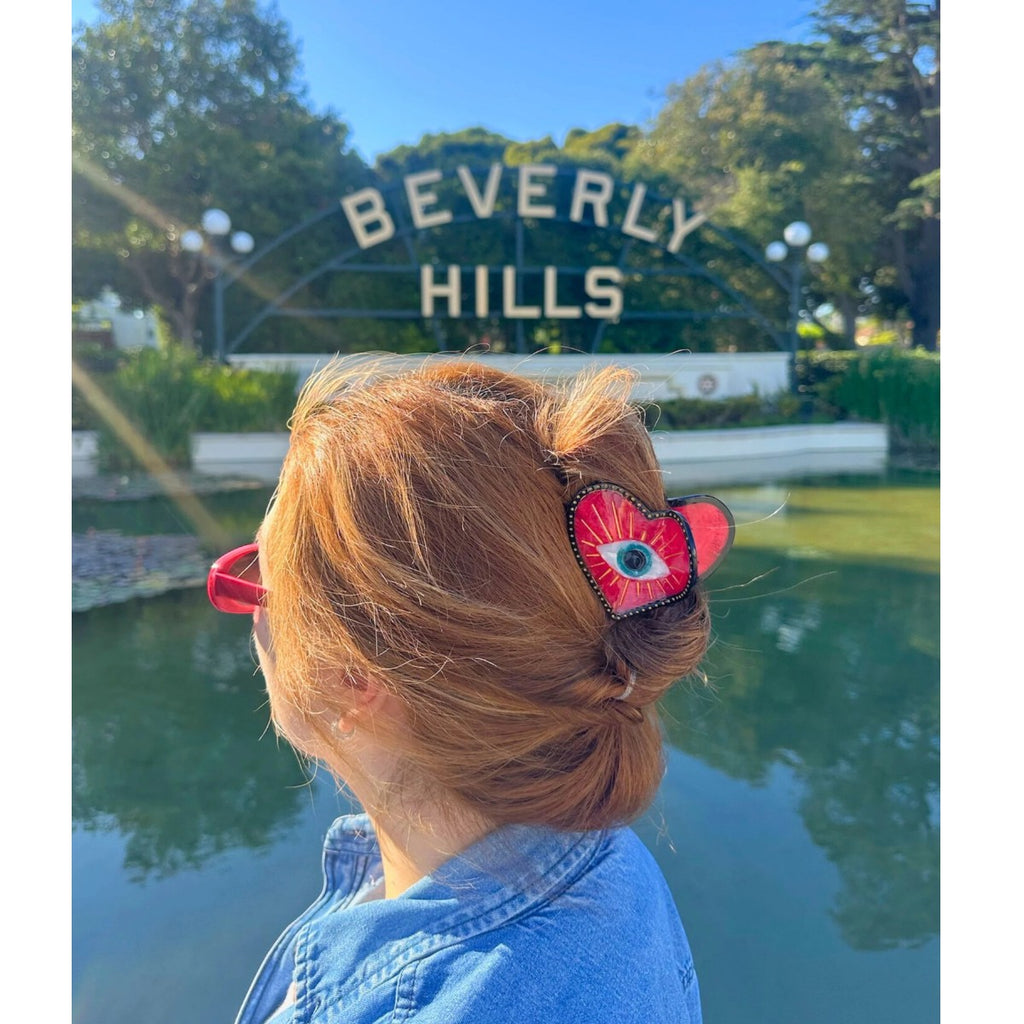Hand-Painted Lucky Eye Heart Hair Claw Clip