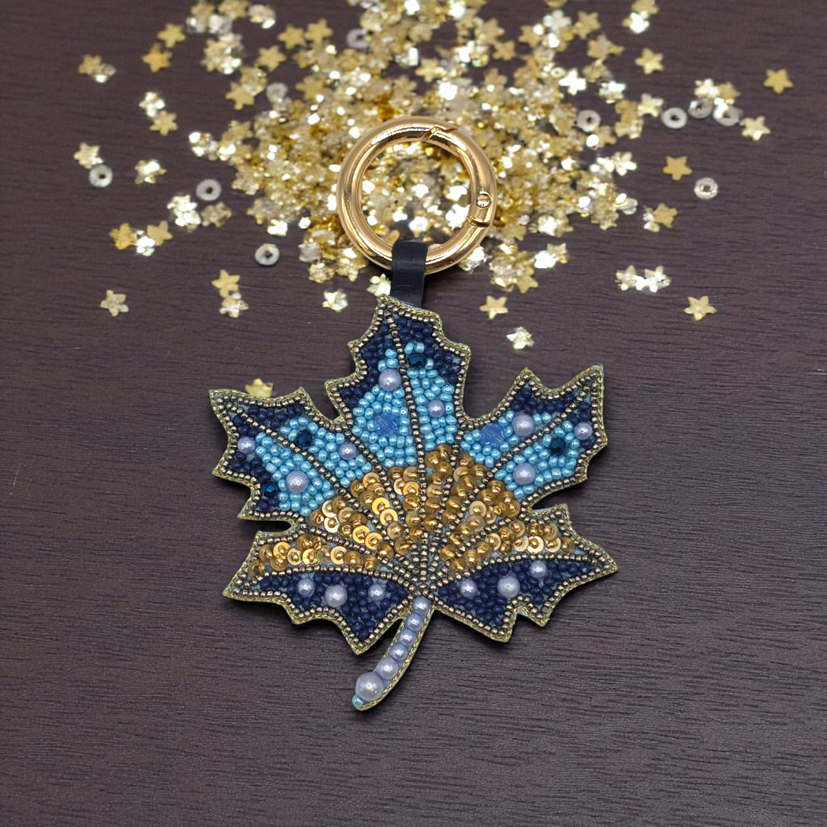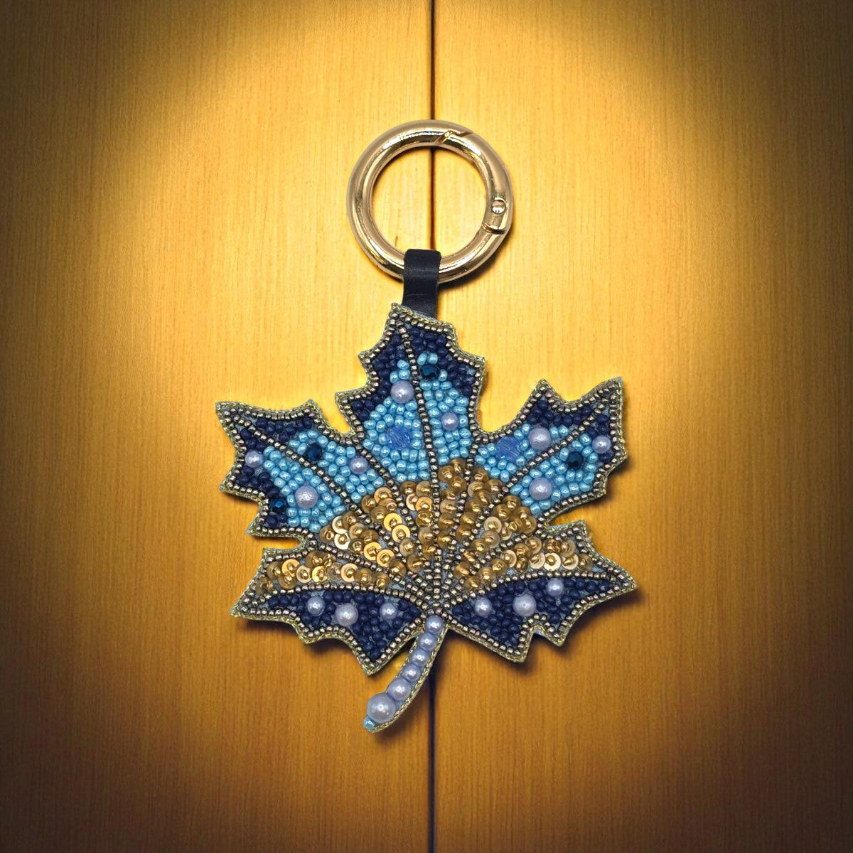 Shimmering with blue ombré tones and delicate sparkle, this embroidered maple leaf charm celebrates the elegance of nature with a contemporary twist. Handcrafted in India by skilled artisans, it reflects the signature artistry of Narratives The Line.
