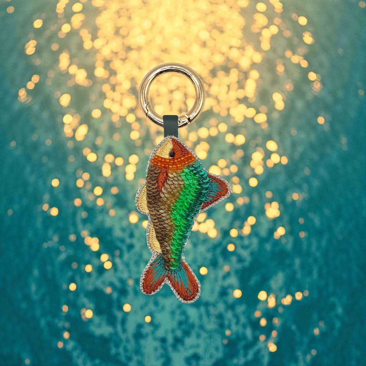 Whether clipped to your tote, backpack, or keyring, this charming fish adds a fun, eclectic twist to your style. The rich textures and shimmering beadwork catch the light beautifully, making it a standout detail that’s as unique as you are.