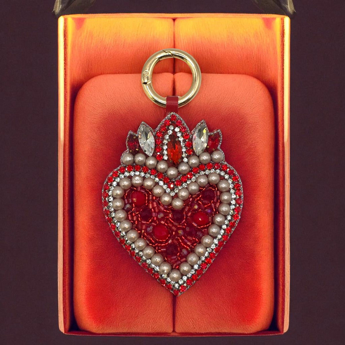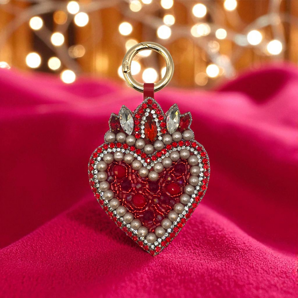 Bold and romantic, this heart-shaped bag charm is hand-beaded with radiant red crystals and luminous pearls for a striking statement finish. Crafted with care by skilled artisans in India, it reflects the artistry and elegance that define Narratives The Line.