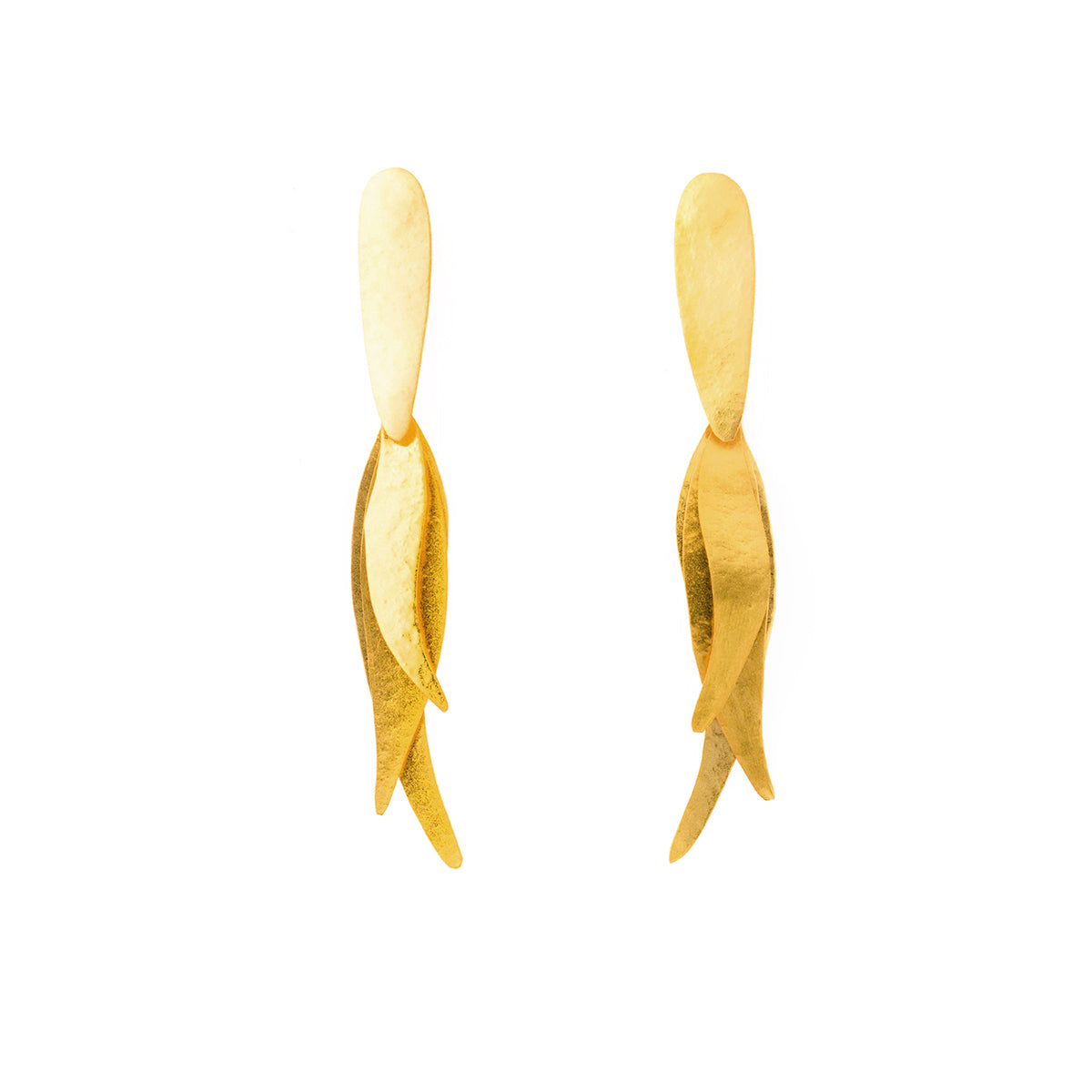 Handmade in Greece by designer Fotini Liami, the Bronze Drop Two Part Wave Earrings feature a fluid, two-piece wave design crafted in warm bronze for beautiful movement and light-catching dimension. Each element is shaped and finished by hand, giving every pair its own subtle variations and artisanal character. Sculptural yet easy to wear, they’re an elegant statement from day to night—modern, organic, and effortlessly refined.