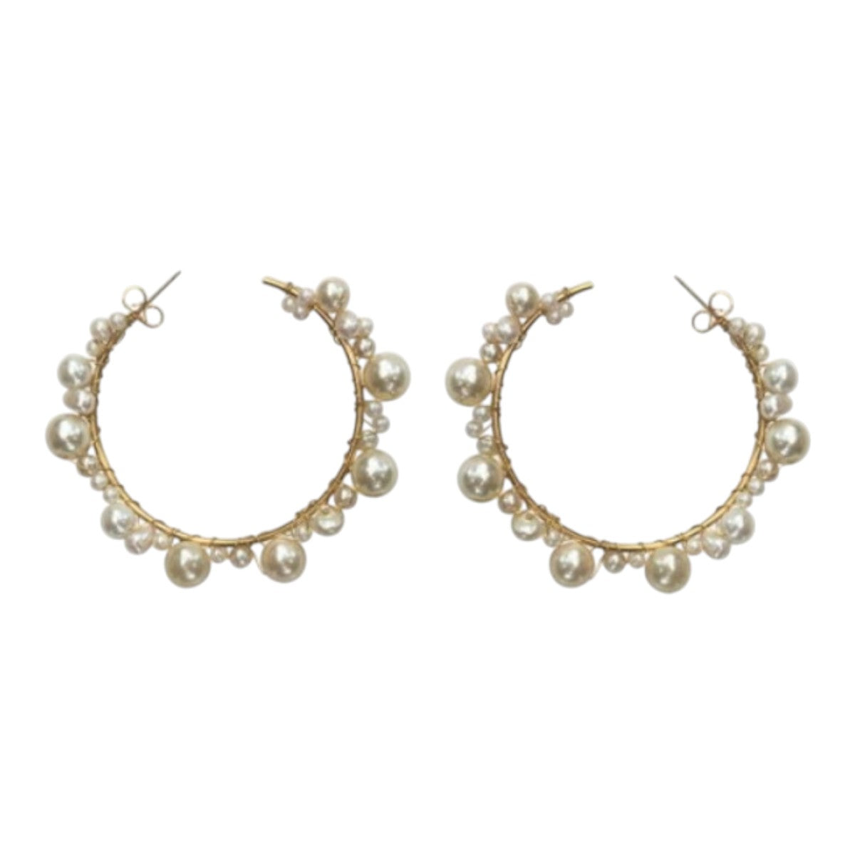 Handmade in Greece by designer Fotini Liami, these Bronze Pearl Orb Cluster Hoop Earrings pair sculpted bronze with a radiant cluster of orb-like pearls for a look that’s equal parts modern and timeless. Each hoop is formed by hand, giving every pair its own subtle, one-of-a-kind character. Lightweight enough for day-to-night wear yet bold enough to stand alone, they add an elegant glow and a touch of Mediterranean artistry to any outfit.