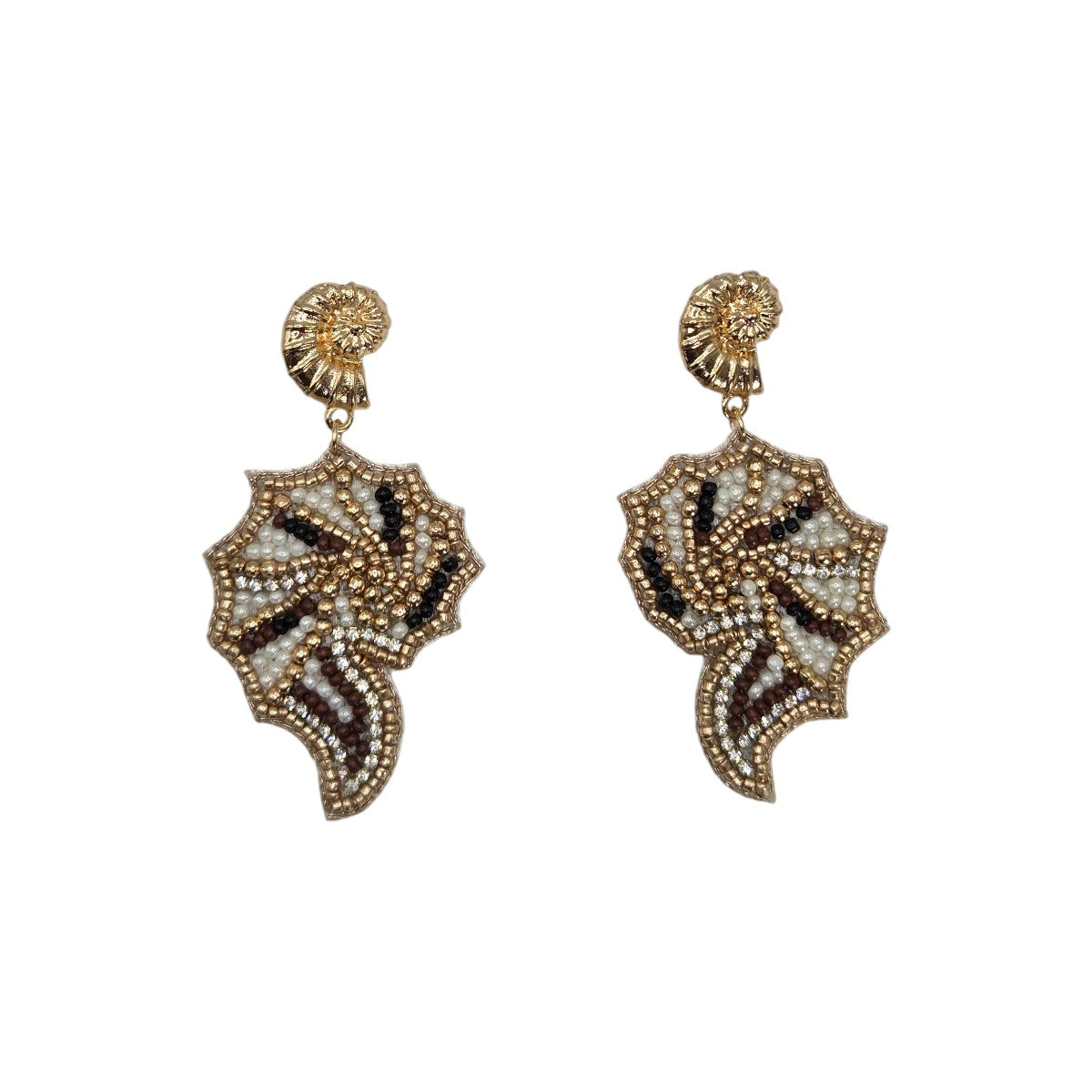 Add a touch of coastal elegance to your accessory collection with the Bronze & White Beaded Spiral Shell Earrings. Designed in a graceful spiral shell silhouette, these earrings feature intricate beading in warm bronze tones accented with soft white and subtle crystal details for added sparkle. Finished with gold-tone hardware, they offer lightweight comfort while making a refined statement. Perfect for seaside getaways or elevating everyday looks with a hint of ocean-inspired charm.