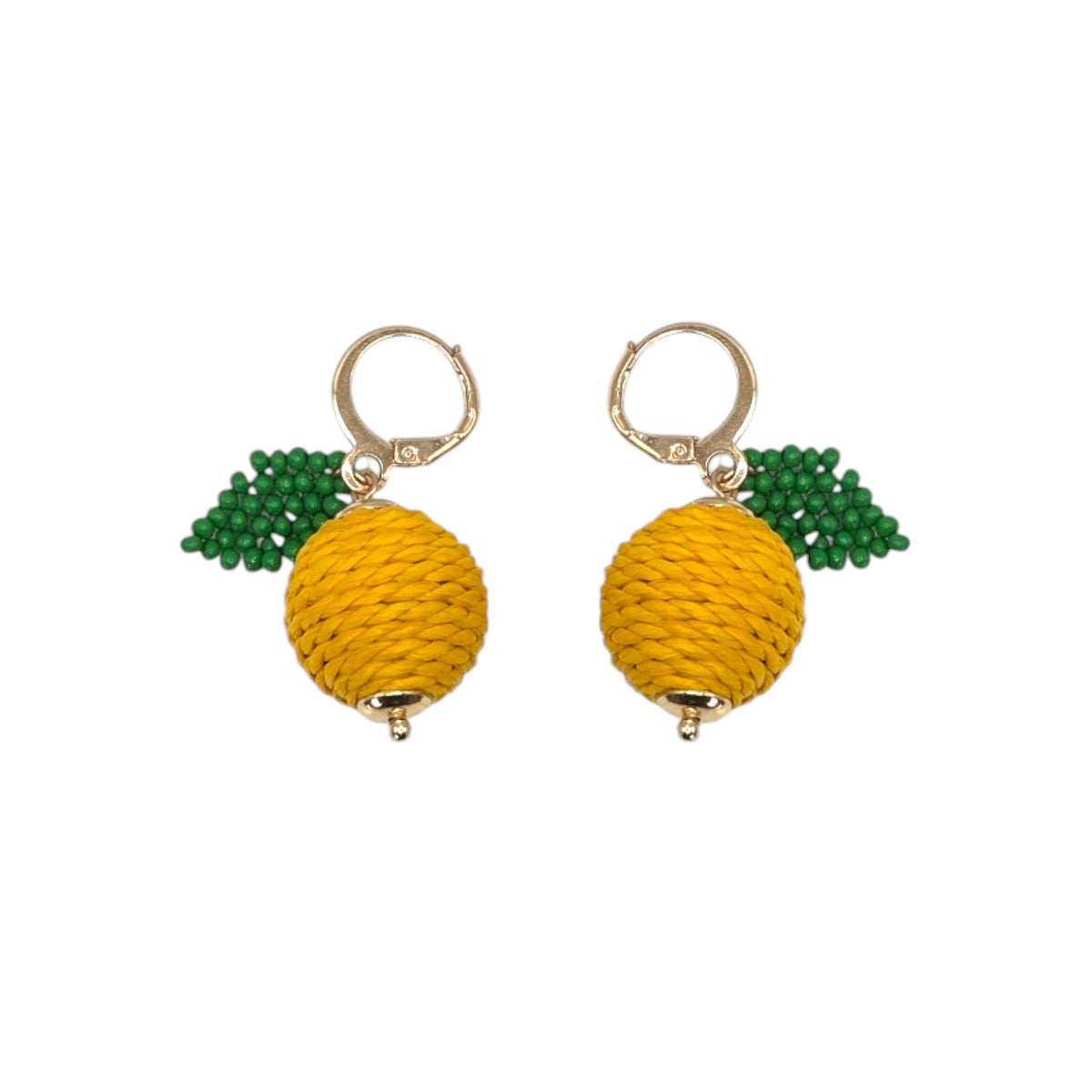 Add a bright, playful pop to your look with the Mini Raffia Lemon Huggie Earrings. Designed in a charming lemon silhouette, these earrings feature a textured raffia-wrapped yellow drop paired with delicate green beaded leaves for a fresh, summery feel. Finished with gold-tone huggie hoops, they offer a comfortable, secure fit while bringing a fun, fruit-inspired accent to any outfit. Perfect for everyday wear or sunny getaways.