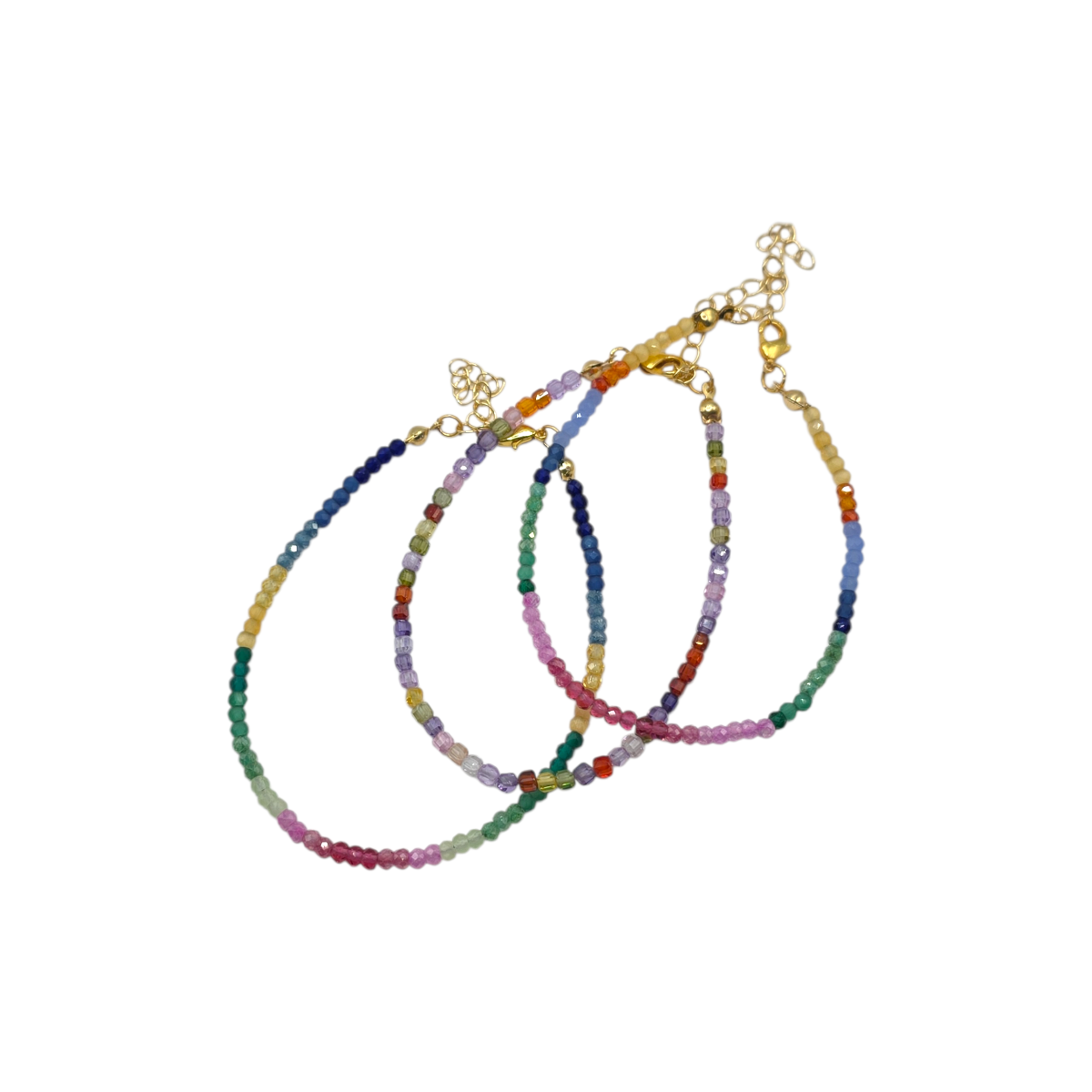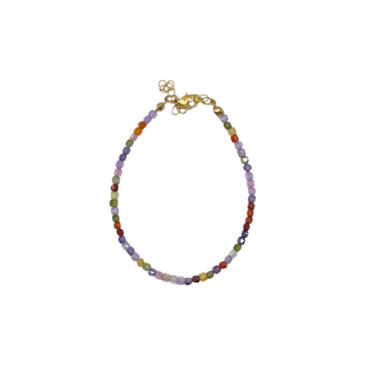 The small faceted beads catch the light beautifully, adding a subtle sparkle while maintaining a refined and lightweight feel. Its slim silhouette makes it perfect for stacking with other bracelets or wearing alone as a delicate pop of colour.