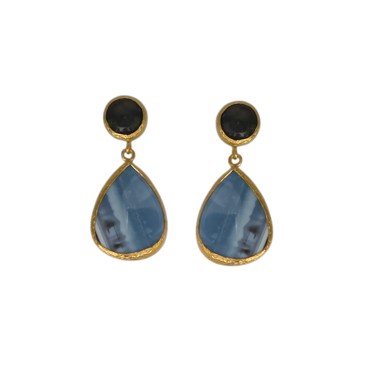 Each pair is handmade in Türkiye using natural stones set in a brass base with flash gold plating. Due to the natural variations in agate, each pair will vary slightly in pattern, colour, and tone, making every piece unique.