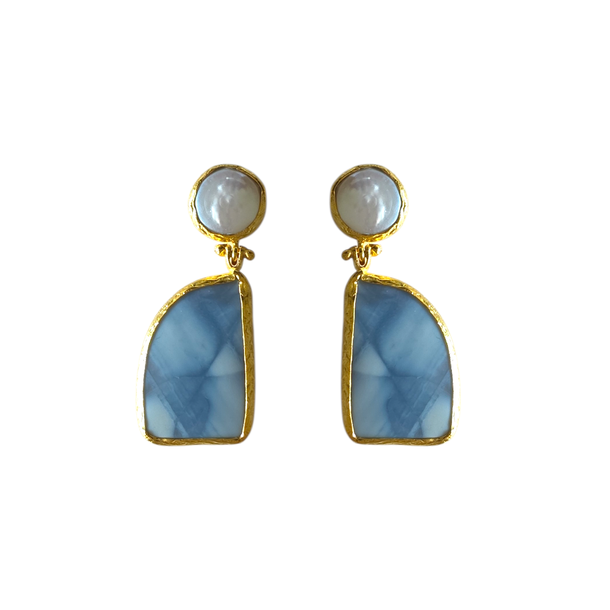 Each pair is handmade in Türkiye using natural stones set in a brass base with flash gold plating. Due to the natural variations in agate and pearl, each pair will vary slightly in colour, pattern, and tone, making every piece unique.