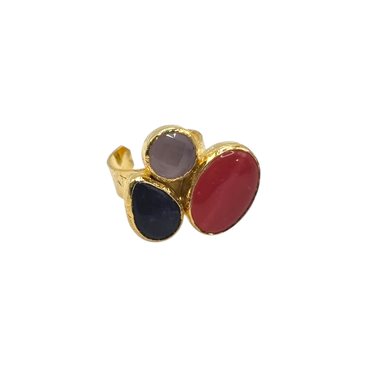 Each piece is handmade in Türkiye using natural stones set in a brass base with flash gold plating. Due to the natural characteristics of the stones, each ring will vary slightly in colour, tone, and pattern, making every piece unique.