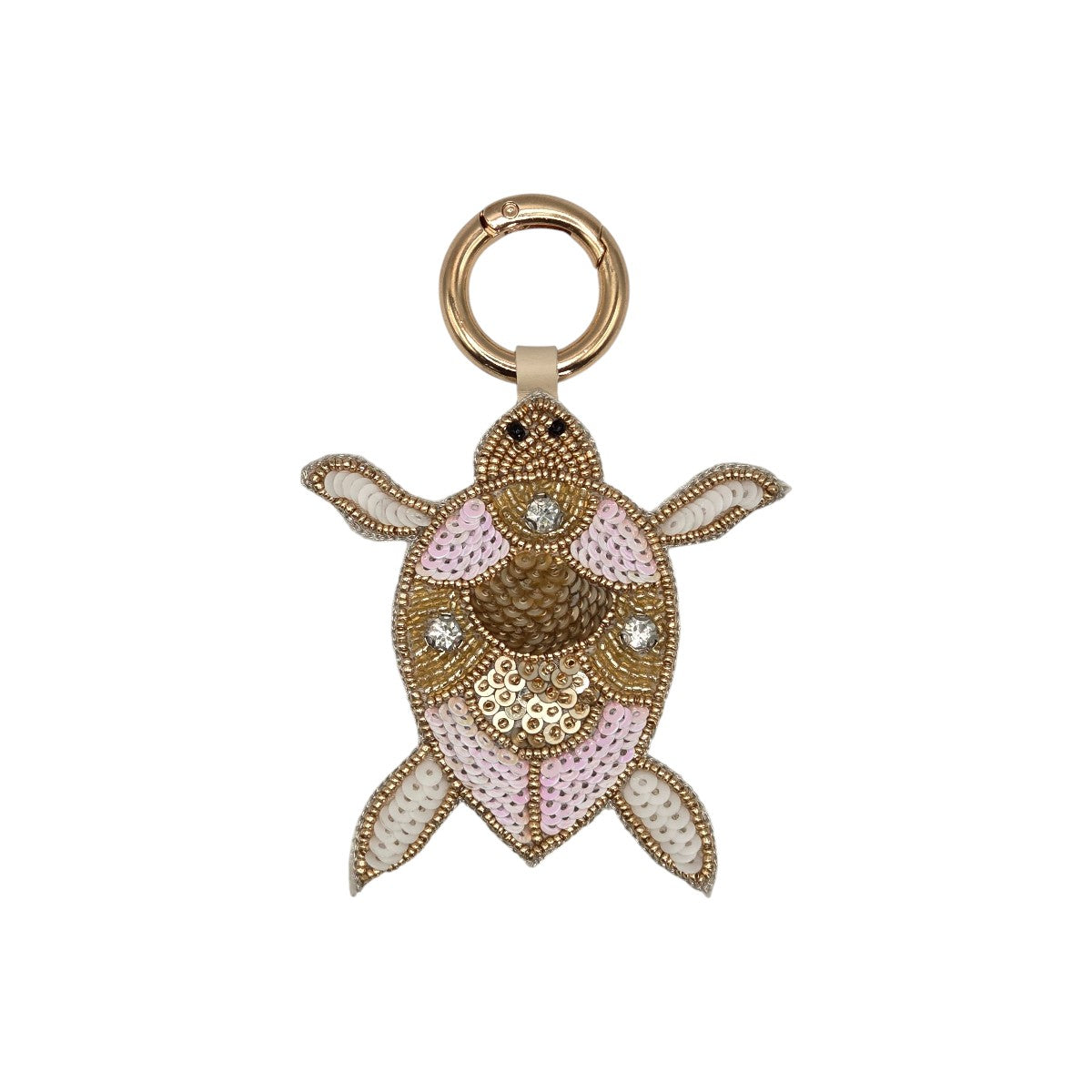 Add a sweet, whimsical touch to your accessories with the Pink & White Beaded Turtle Bag Charm. Designed with intricate beading and soft pastel tones, this charming turtle features pink and white sequin accents, golden beaded details, and subtle crystal embellishments for a hint of sparkle. Finished with gold-tone hardware and a secure clasp, it easily attaches to handbags, totes, or keys. Playful yet polished, this charm is a delightful statement piece and a perfect gift for animal and accessory lovers alike.